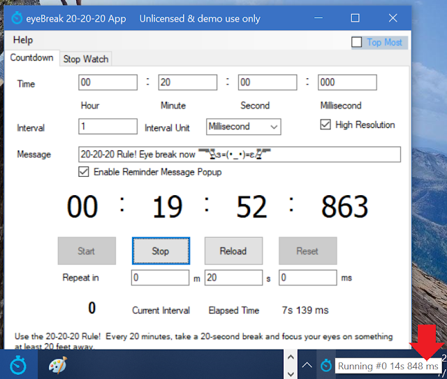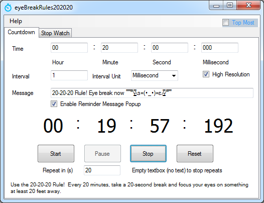 eyeBreak 20-20-20 App/Program/Utility is a tiny Windows App designed to enforce the 20-20-20 Rule! The goal of this app is to prevent repetitive Computer Vision Syndrome (Digital Eye Strain).